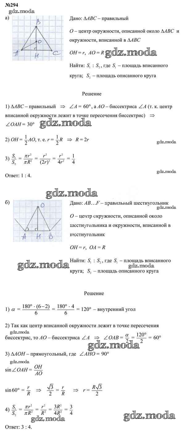 ОТВЕТ на задание № 294 Учебник по Геометрии 9 класс Казаков