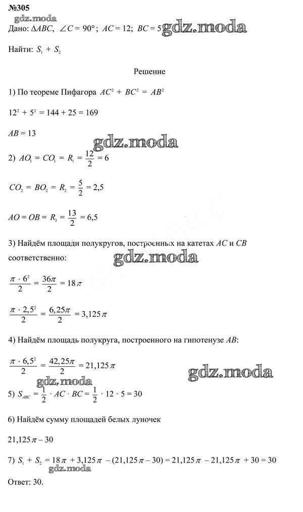 ОТВЕТ на задание № 305 Учебник по Геометрии 9 класс Казаков