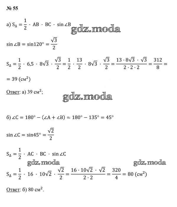 ОТВЕТ на задание № 55 Учебник по Геометрии 9 класс Казаков