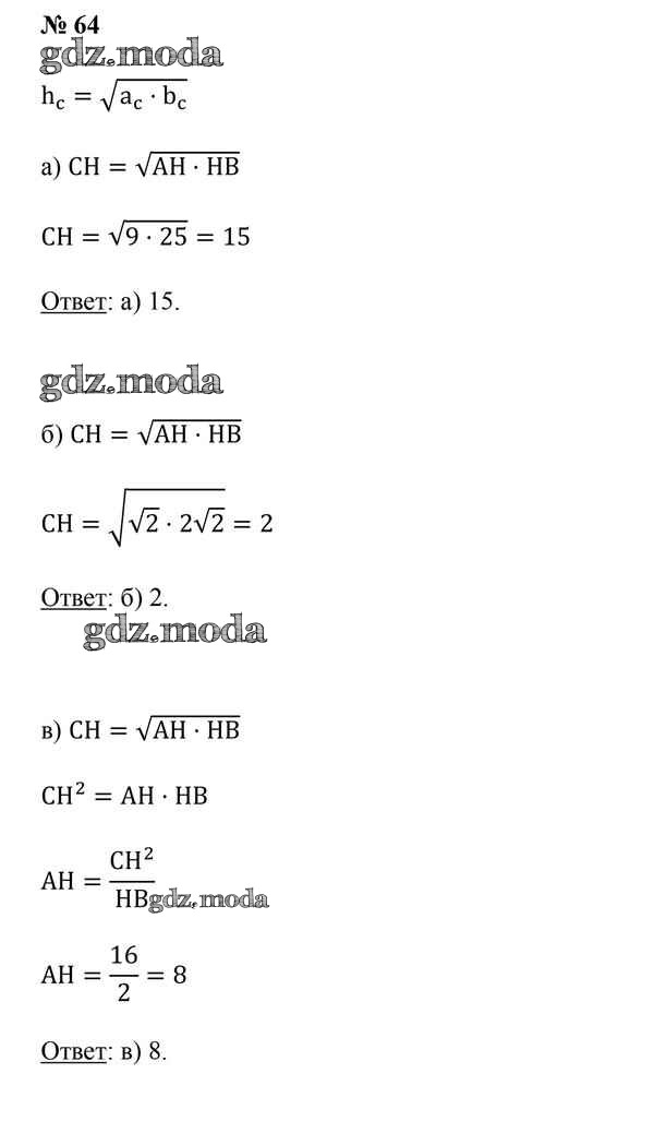 ОТВЕТ на задание № 64 Учебник по Геометрии 9 класс Казаков