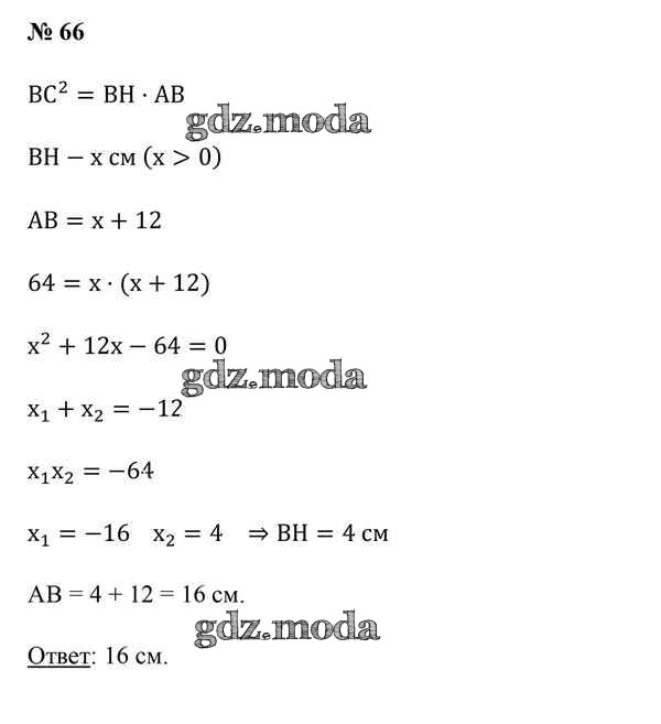 ОТВЕТ на задание № 66 Учебник по Геометрии 9 класс Казаков