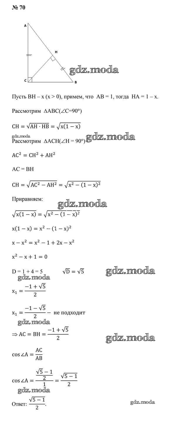 ОТВЕТ на задание № 70 Учебник по Геометрии 9 класс Казаков