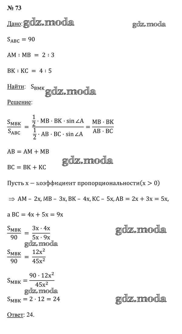 ОТВЕТ на задание № 73 Учебник по Геометрии 9 класс Казаков