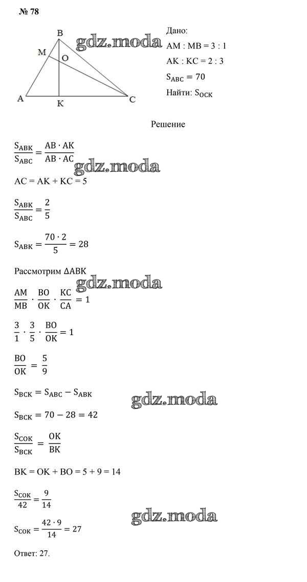 ОТВЕТ на задание № 78 Учебник по Геометрии 9 класс Казаков
