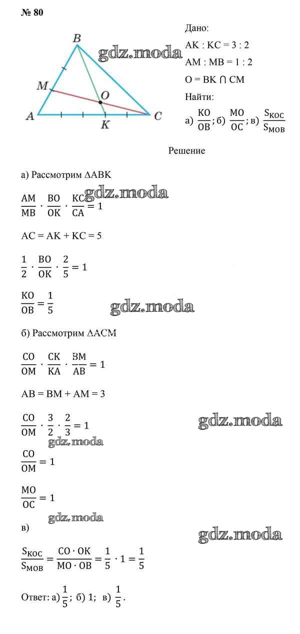 ОТВЕТ на задание № 80 Учебник по Геометрии 9 класс Казаков