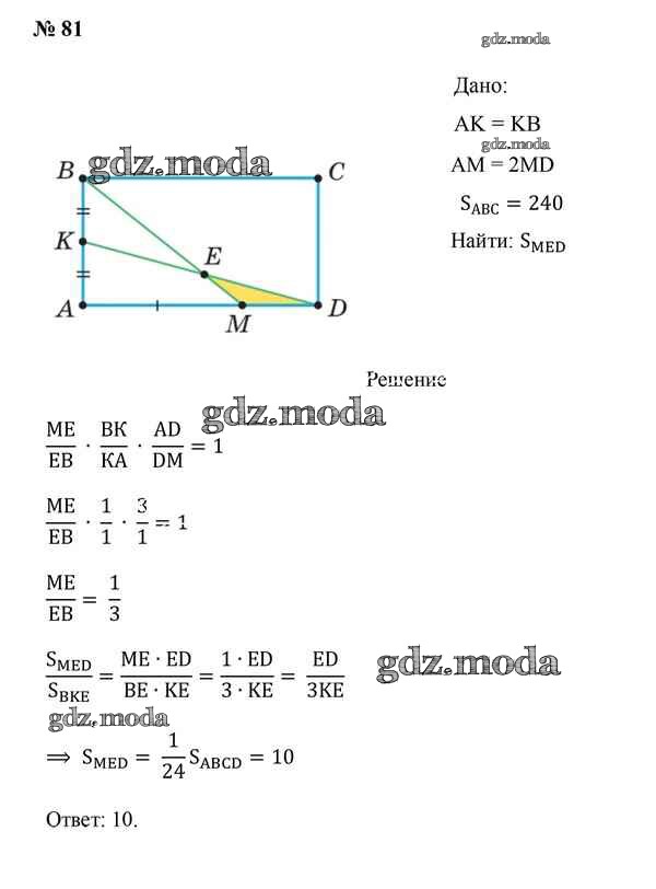 ОТВЕТ на задание № 81 Учебник по Геометрии 9 класс Казаков