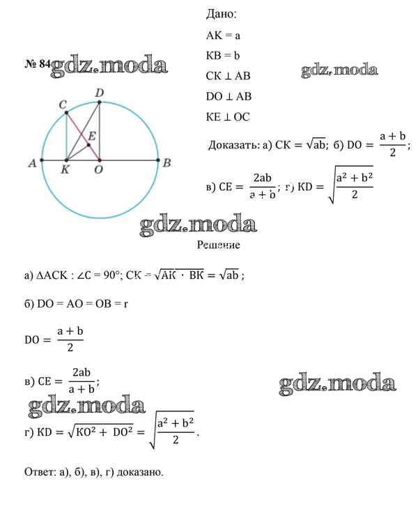 ОТВЕТ на задание № 84 Учебник по Геометрии 9 класс Казаков