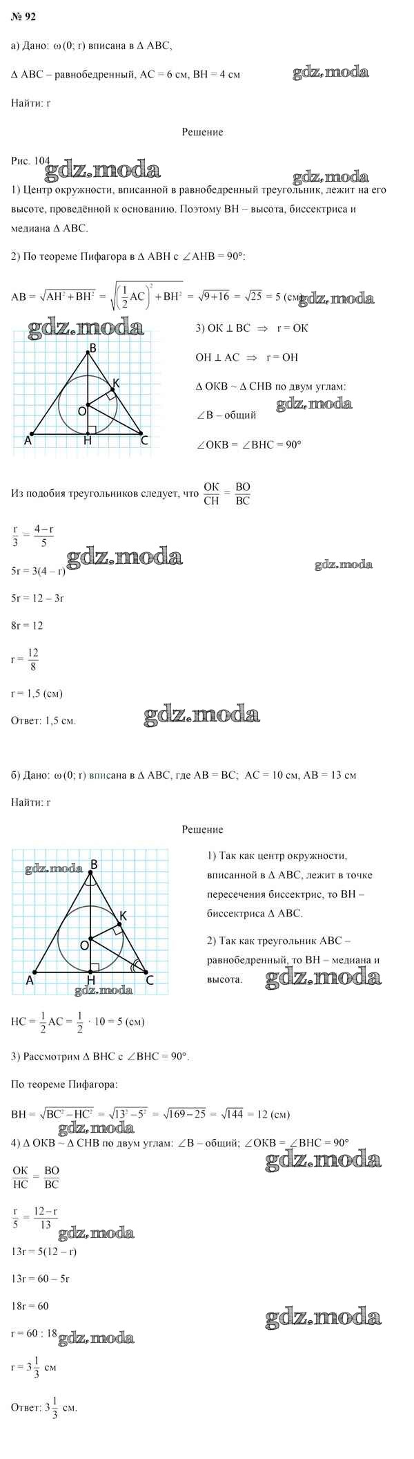 ОТВЕТ на задание № 92 Учебник по Геометрии 9 класс Казаков