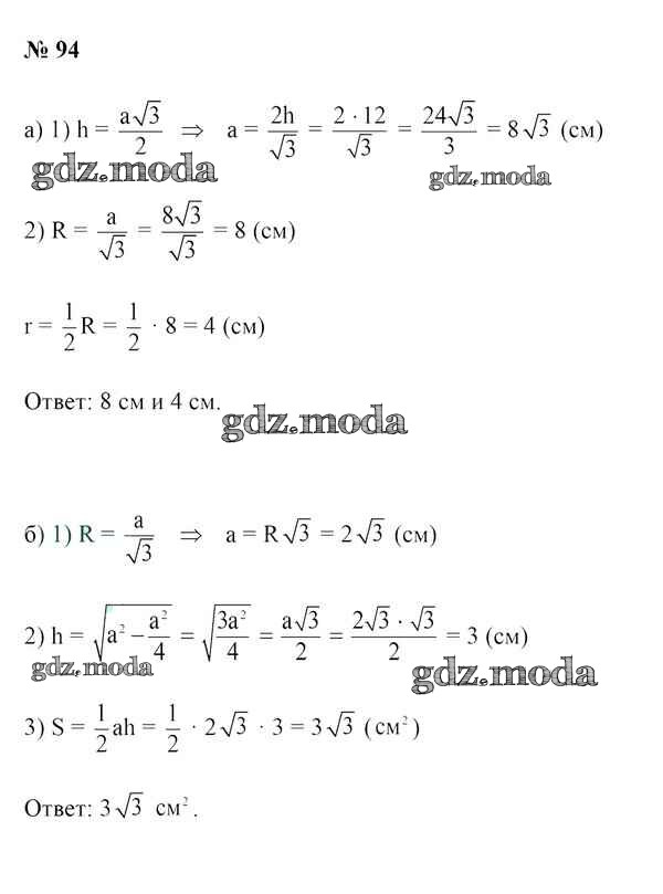 ОТВЕТ на задание № 94 Учебник по Геометрии 9 класс Казаков