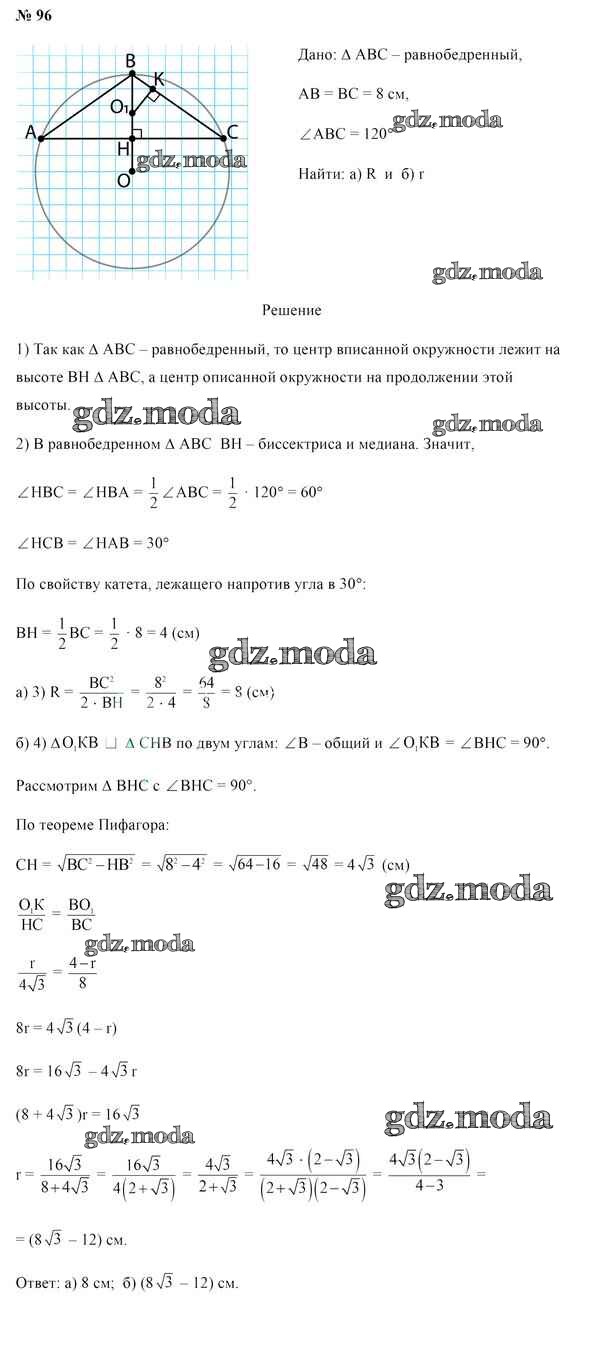ОТВЕТ на задание № 96 Учебник по Геометрии 9 класс Казаков