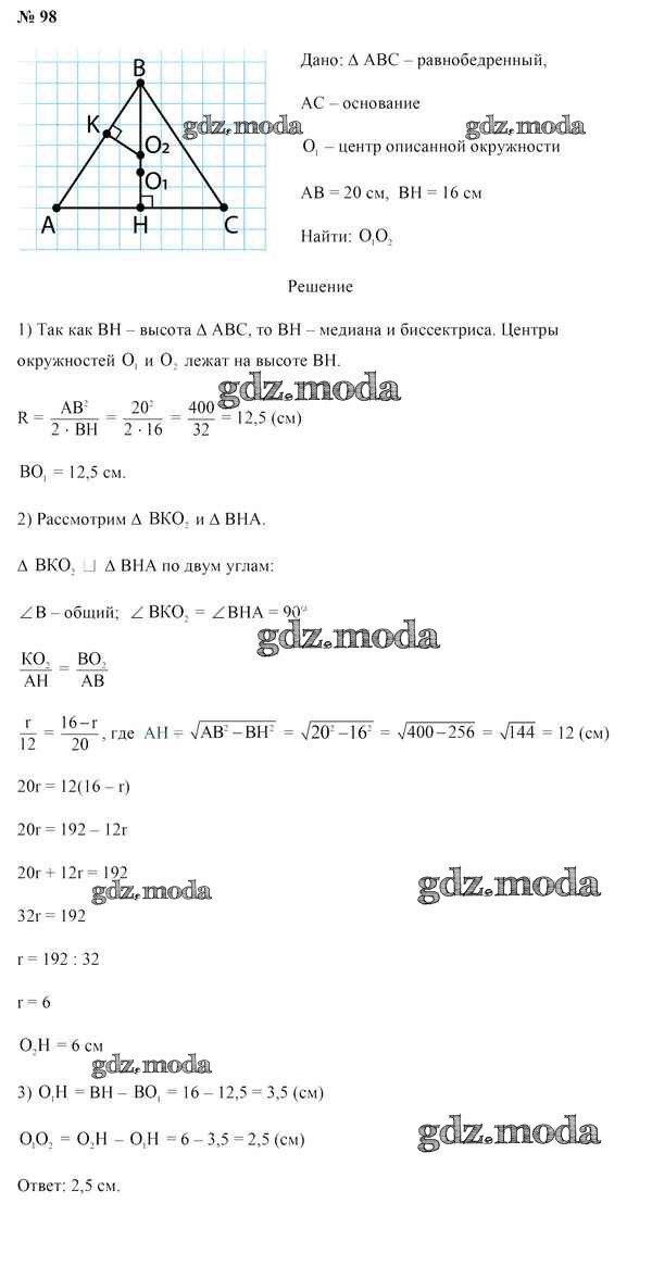 ОТВЕТ на задание № 98 Учебник по Геометрии 9 класс Казаков