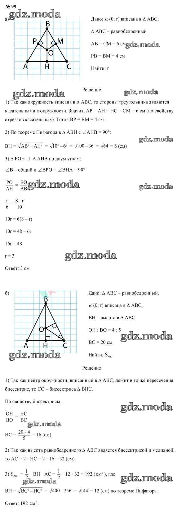 ОТВЕТ на задание № 99 Учебник по Геометрии 9 класс Казаков