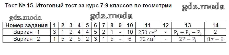 ОТВЕТ на задание № 15 Контрольно-измерительные материалы (КИМ) по Геометрии 9 класс Рязановский