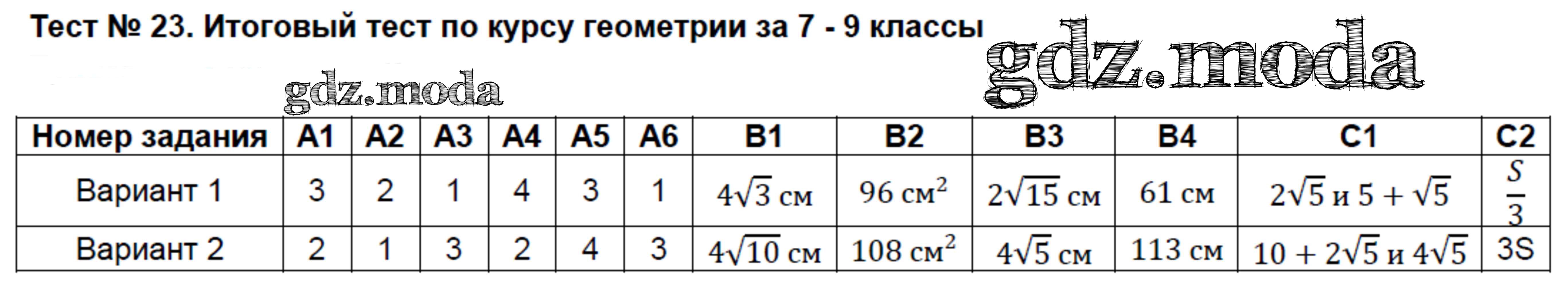 ОТВЕТ на задание № 23 Контрольно-измерительные материалы (КИМ) по Геометрии 9 класс Рурукин