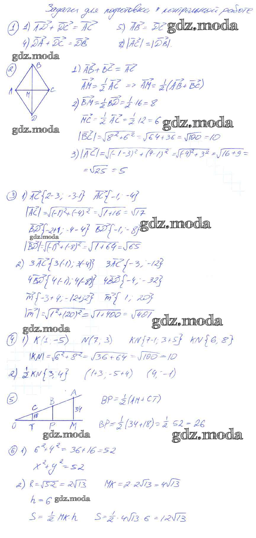 ОТВЕТ на задание № 1 Контрольные работы по Геометрии 9 класс Мельникова УМК