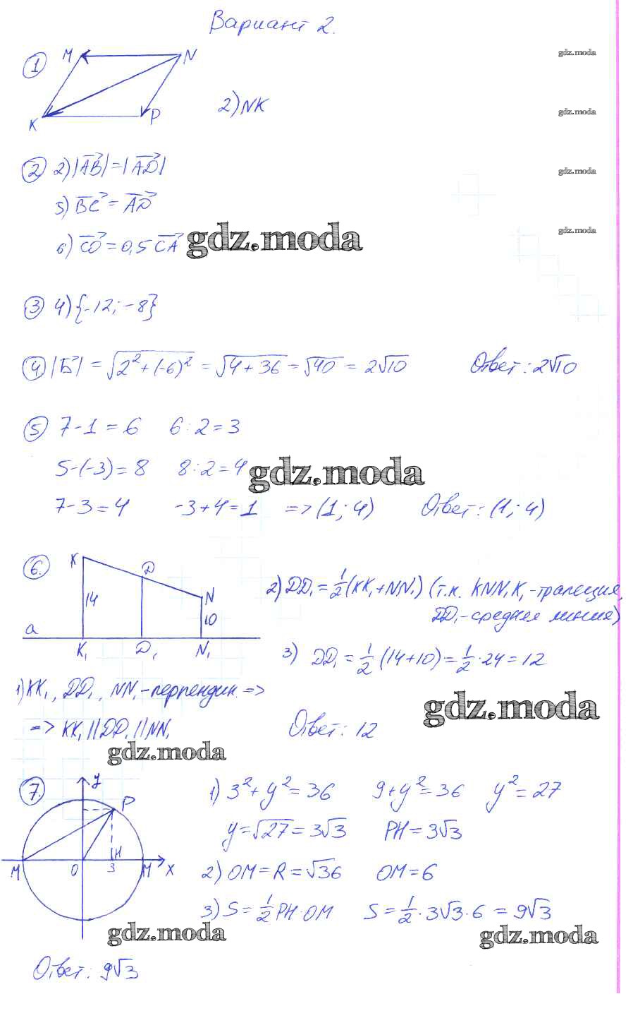 ОТВЕТ на задание № 3 Контрольные работы по Геометрии 9 класс Мельникова УМК