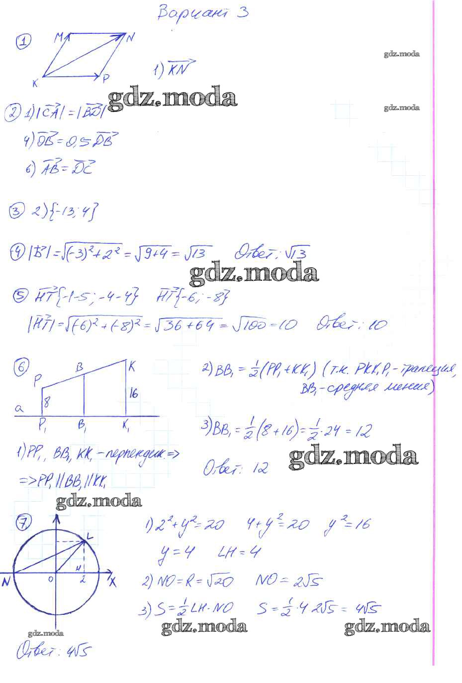 ОТВЕТ на задание № 4 Контрольные работы по Геометрии 9 класс Мельникова УМК