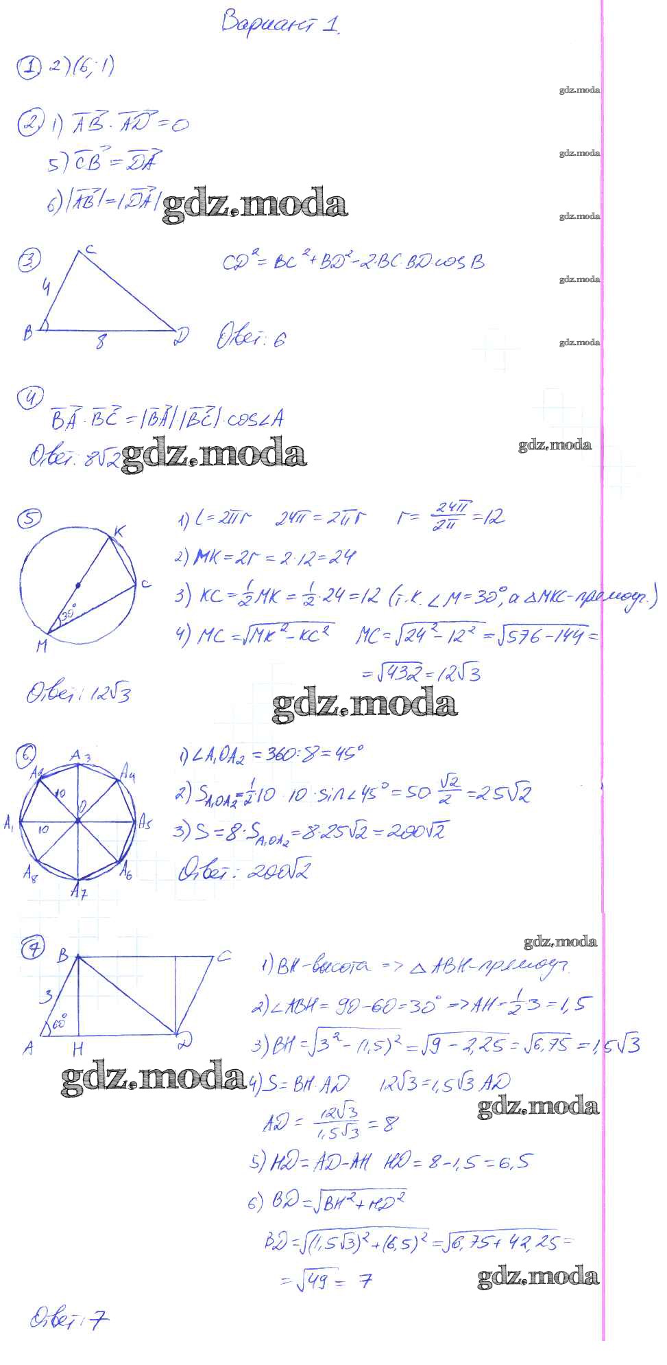 ОТВЕТ на задание № 2 Контрольные работы по Геометрии 9 класс Мельникова УМК