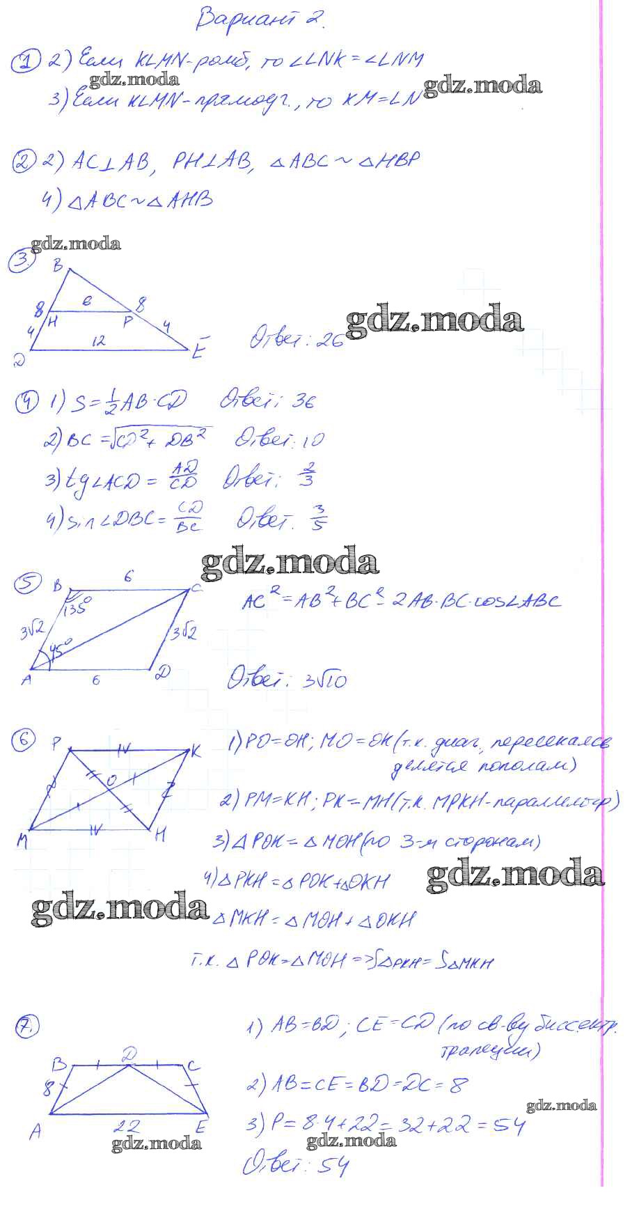 ОТВЕТ на задание № 3 Контрольные работы по Геометрии 9 класс Мельникова УМК