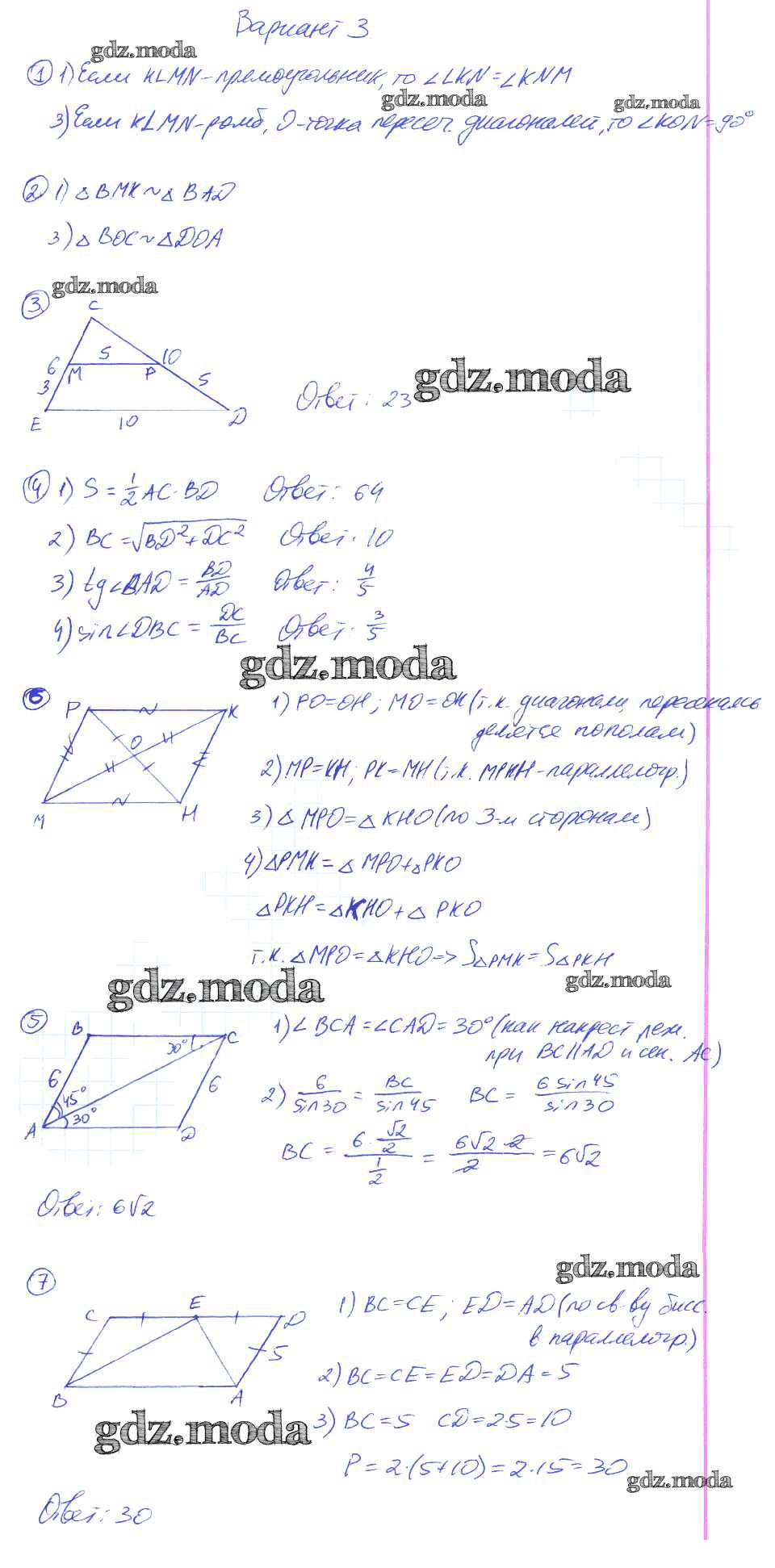 ОТВЕТ на задание № 4 Контрольные работы по Геометрии 9 класс Мельникова УМК