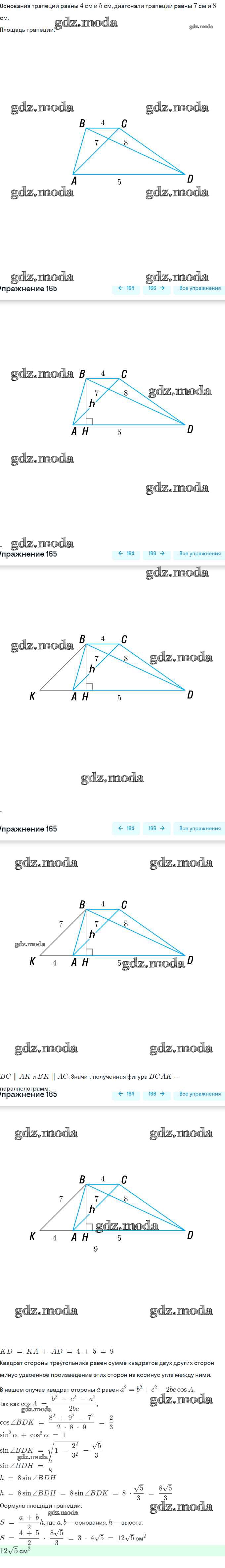 ГДЗ решение к заданию № 165 Геометрия 9 класс Мерзляк А.Г. Вентана-граф, Просвещение 2016, 2023 ФГОС бесплатно на гдз.мода!