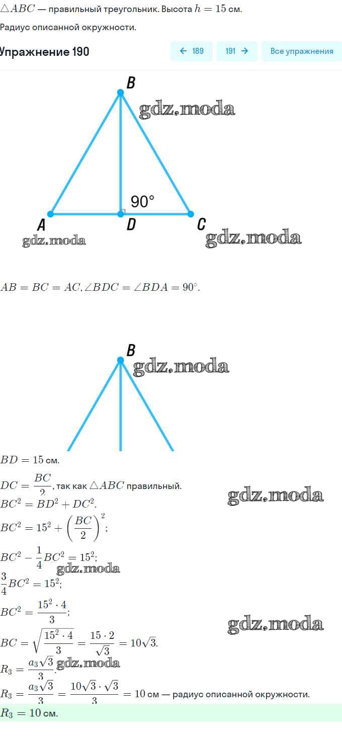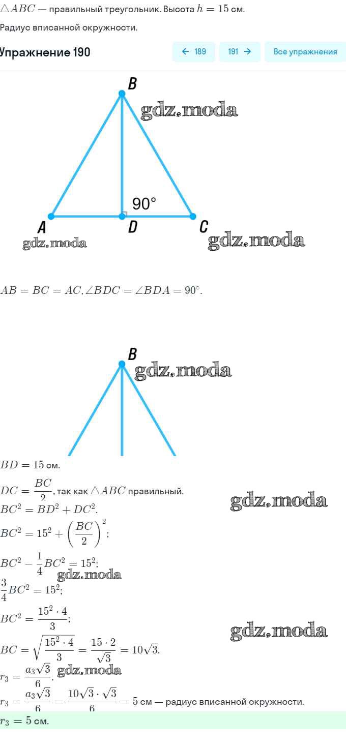 ОТВЕТ на задание № 190 Учебник по Геометрии 9 класс Мерзляк