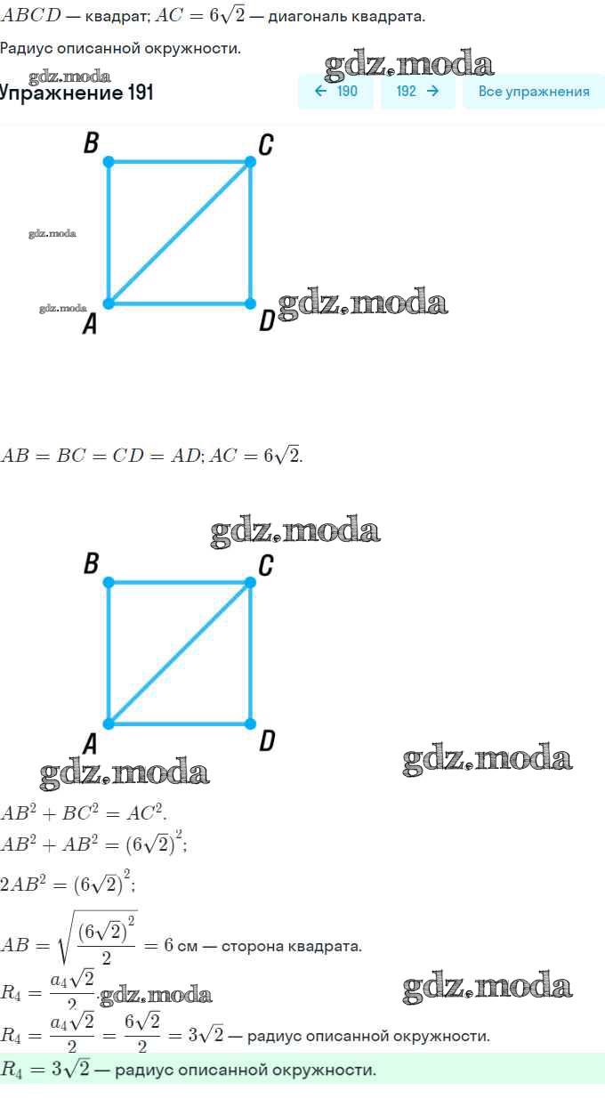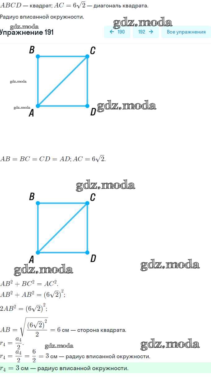 ОТВЕТ на задание № 191 Учебник по Геометрии 9 класс Мерзляк