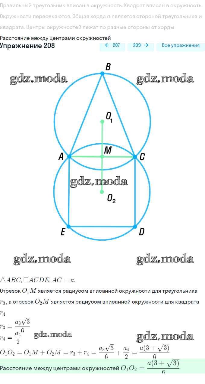 ГДЗ решение к заданию № 208 Геометрия 9 класс Мерзляк А.Г. Вентана-граф, Просвещение 2016, 2023 ФГОС бесплатно на гдз.мода!