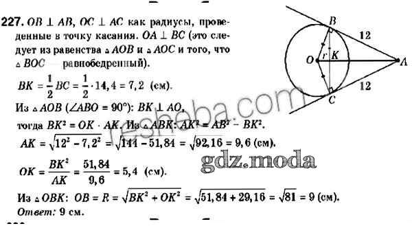 ОТВЕТ на задание № 227 Учебник по Геометрии 9 класс Мерзляк