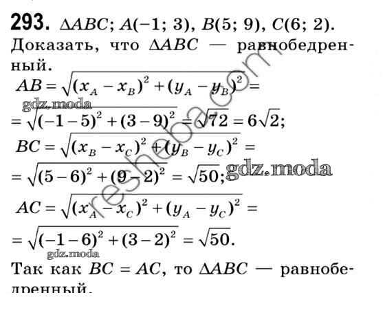 ОТВЕТ на задание № 293 Учебник по Геометрии 9 класс Мерзляк