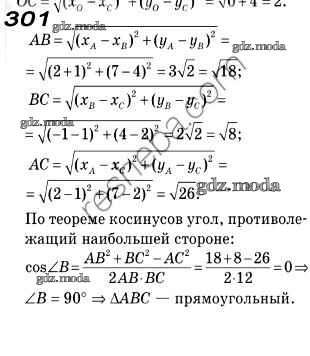 ОТВЕТ на задание № 301 Учебник по Геометрии 9 класс Мерзляк
