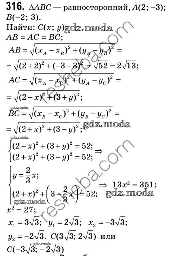 ОТВЕТ на задание № 316 Учебник по Геометрии 9 класс Мерзляк