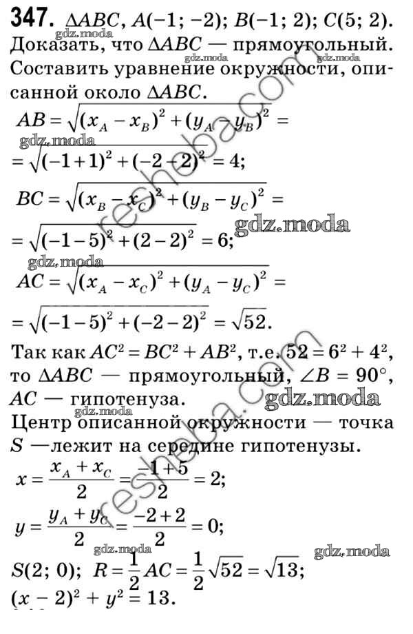ОТВЕТ на задание № 347 Учебник по Геометрии 9 класс Мерзляк