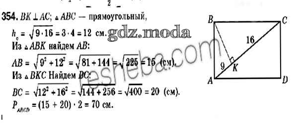 ОТВЕТ на задание № 354 Учебник по Геометрии 9 класс Мерзляк