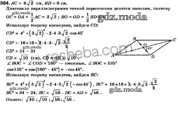 ГДЗ решение к заданию № 384 Геометрия 9 класс Мерзляк А.Г. Вентана-граф, Просвещение 2016, 2023 ФГОС бесплатно на гдз.мода!