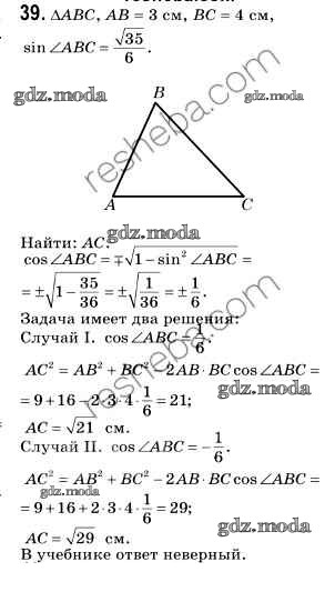 ОТВЕТ на задание № 39 Учебник по Геометрии 9 класс Мерзляк