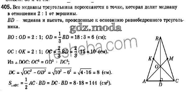 ОТВЕТ на задание № 405 Учебник по Геометрии 9 класс Мерзляк