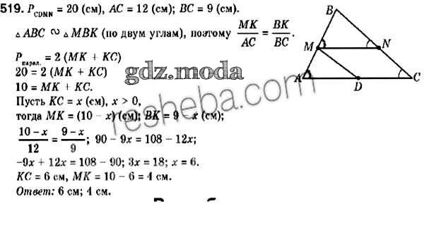 ОТВЕТ на задание № 519 Учебник по Геометрии 9 класс Мерзляк