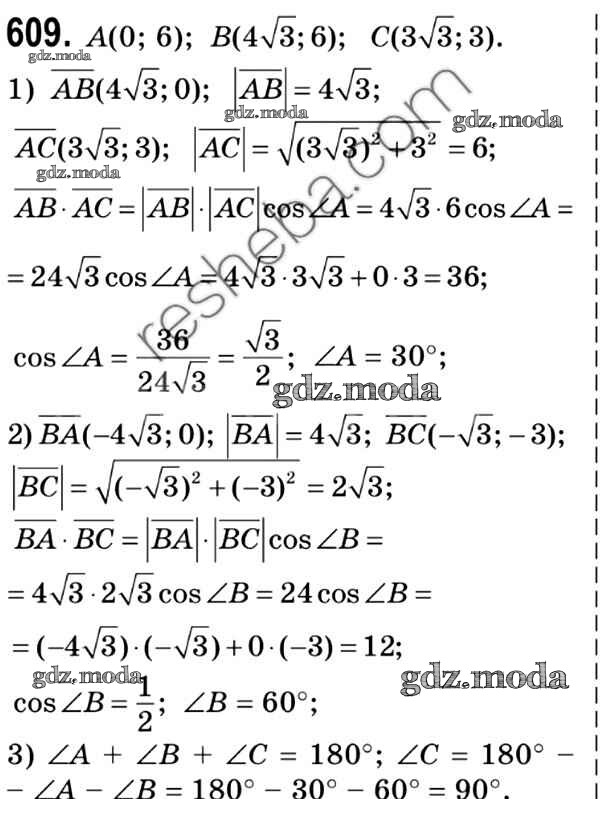 ОТВЕТ на задание № 609 Учебник по Геометрии 9 класс Мерзляк