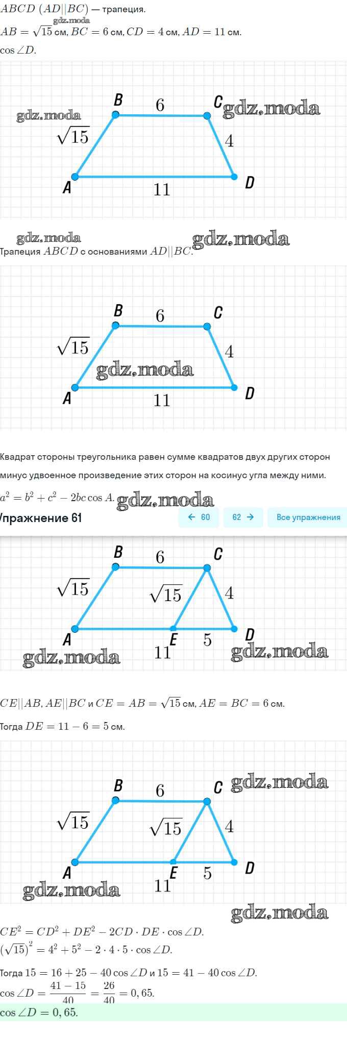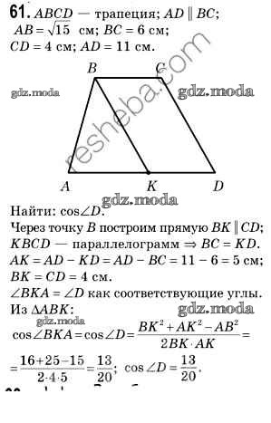 ГДЗ решение к заданию № 61 Геометрия 9 класс Мерзляк А.Г. Вентана-граф, Просвещение 2016, 2023 ФГОС бесплатно на гдз.мода!