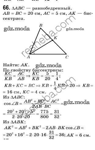 ГДЗ решение к заданию № 66 Геометрия 9 класс Мерзляк А.Г. Вентана-граф, Просвещение 2016, 2023 ФГОС бесплатно на гдз.мода!