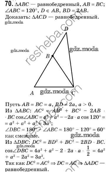 ГДЗ решение к заданию № 70 Геометрия 9 класс Мерзляк А.Г. Вентана-граф, Просвещение 2016, 2023 ФГОС бесплатно на гдз.мода!