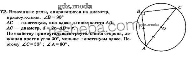 ОТВЕТ на задание № 72 Учебник по Геометрии 9 класс Мерзляк