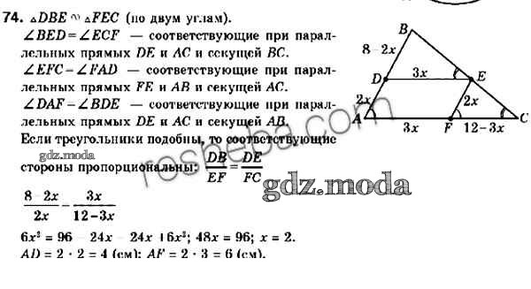 ГДЗ решение к заданию № 74 Геометрия 9 класс Мерзляк А.Г. Вентана-граф, Просвещение 2016, 2023 ФГОС бесплатно на гдз.мода!