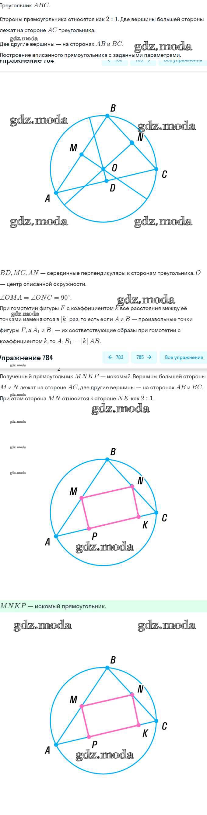 ОТВЕТ на задание № 784 Учебник по Геометрии 9 класс Мерзляк