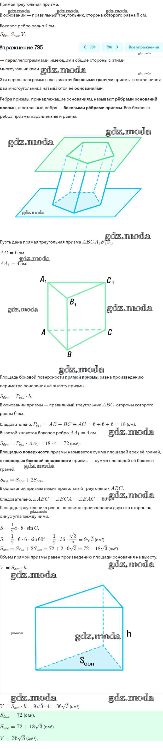 ОТВЕТ на задание № 795 Учебник по Геометрии 9 класс Мерзляк