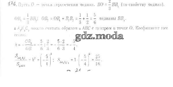 ОТВЕТ на задание № 876 Учебник по Геометрии 9 класс Мерзляк