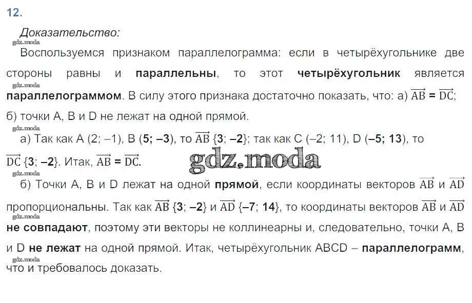 ОТВЕТ на задание № 12 Рабочая тетрадь по Геометрии 9 класс Атанасян