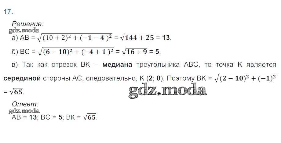 ОТВЕТ на задание № 17 Рабочая тетрадь по Геометрии 9 класс Атанасян