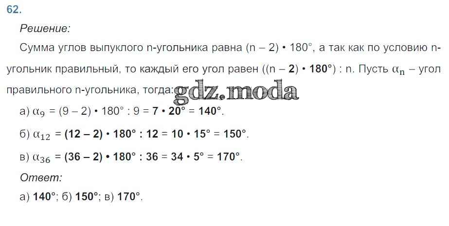 ГДЗ решение к заданию № 62 Геометрия 9 класс рабочая тетрадь Атанасян Л.С. Просвещение 2014 ФГОС бесплатно на гдз.мода!